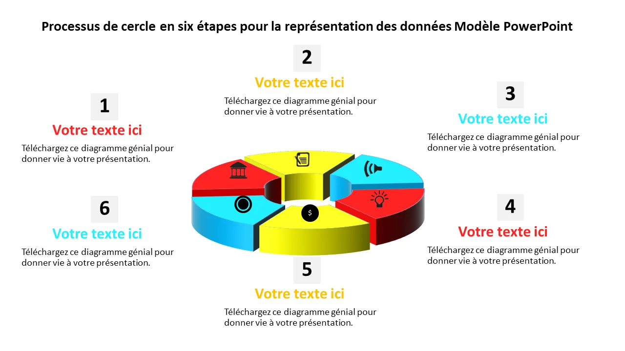 0115 Processus de cercle en six étapes pour le modèle Powerpoint de représentation des données