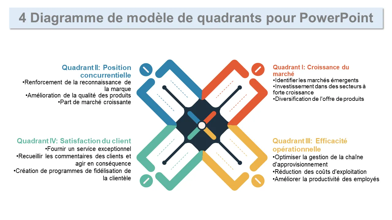Diagramme de modèle à 4 quadrants pour le modèle de diapositive Powerpoint
