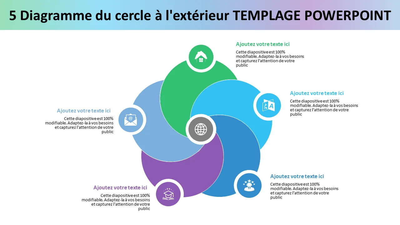 Modèle Powerpoint de diagramme de Venn à 5 cercles