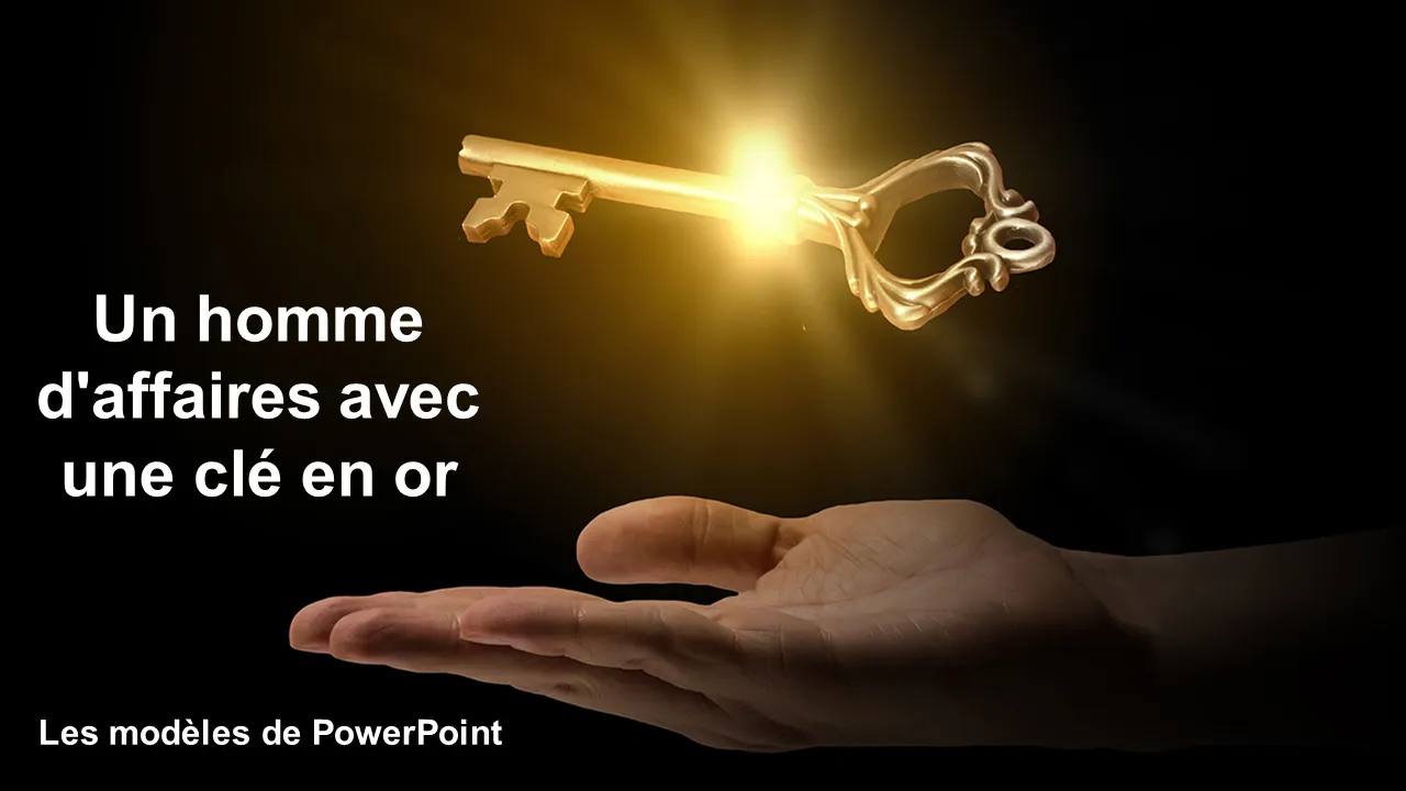 Modèles Powerpoint de clé d'or de main d'homme d'affaires