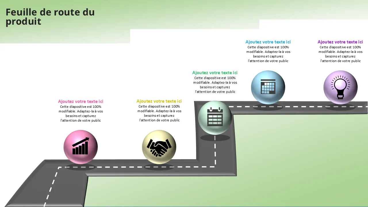 Idées PowerPoint de feuille de route du produit Modèle PowerPoint pour présentations professionnelles