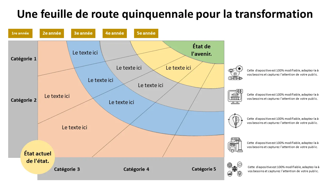 Un plan annuel de transformation conçu par des professionnels pour les présentations sur la transformation numérique. Diapositives modifiables au design moderne, idéales pour les professionnels, les consultants et les équipes. Mise en page épurée prête à être personnalisée.