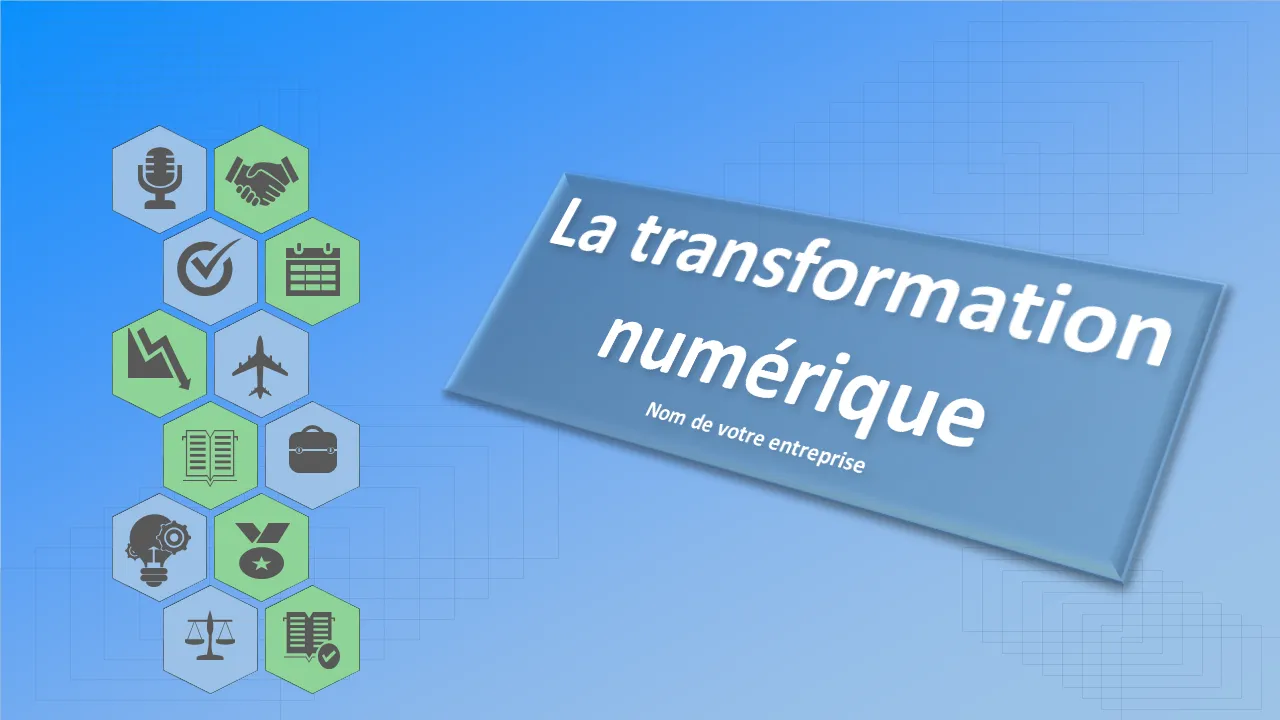 Modèle PowerPoint professionnel pour la stratégie de transformation numérique utilisant l'IA. Parfait pour les cadres, les consultants et les leaders technologiques. Modifiable, visuellement attrayant et prêt pour les présentations.