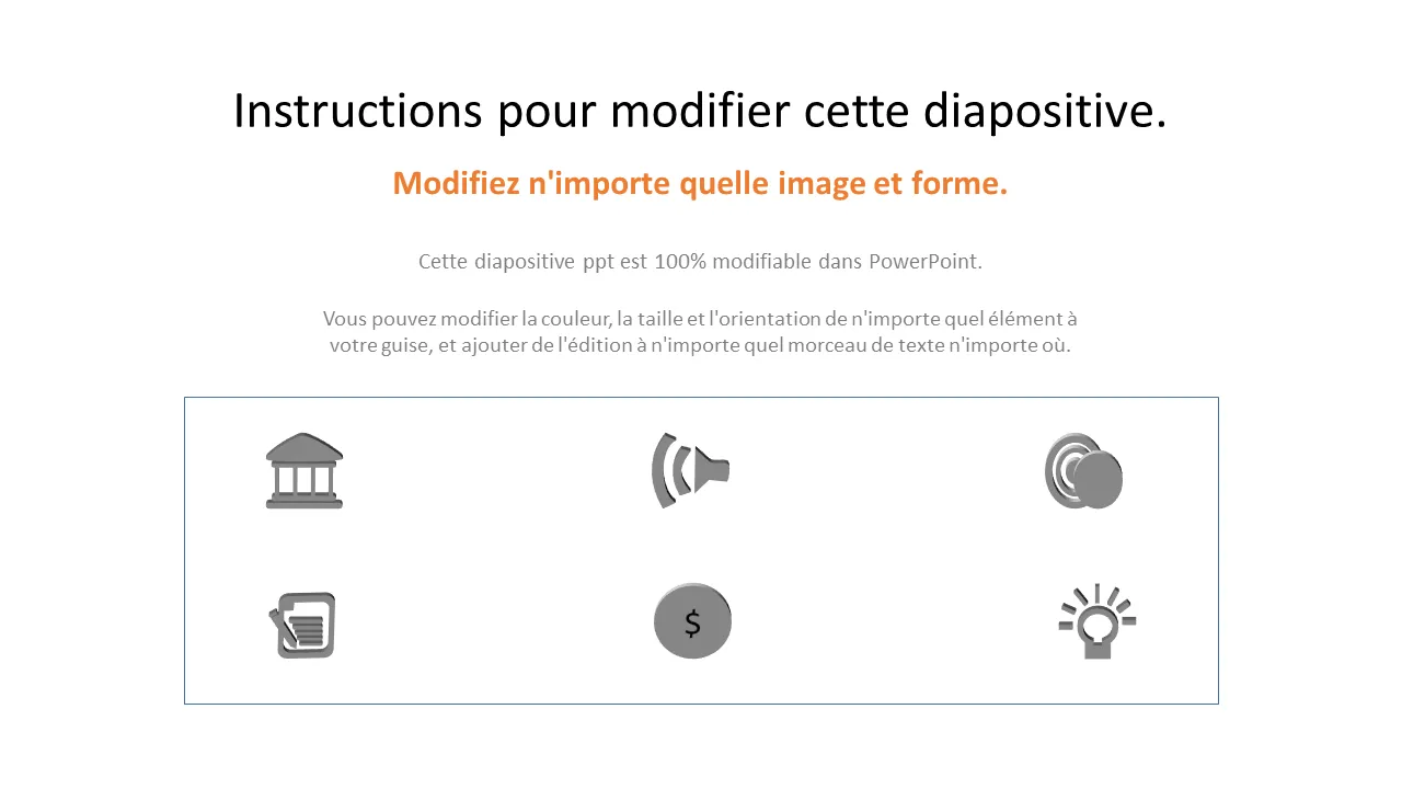 - Texte, formes, couleurs et icônes entièrement modifiables pour une personnalisation complète de la marque