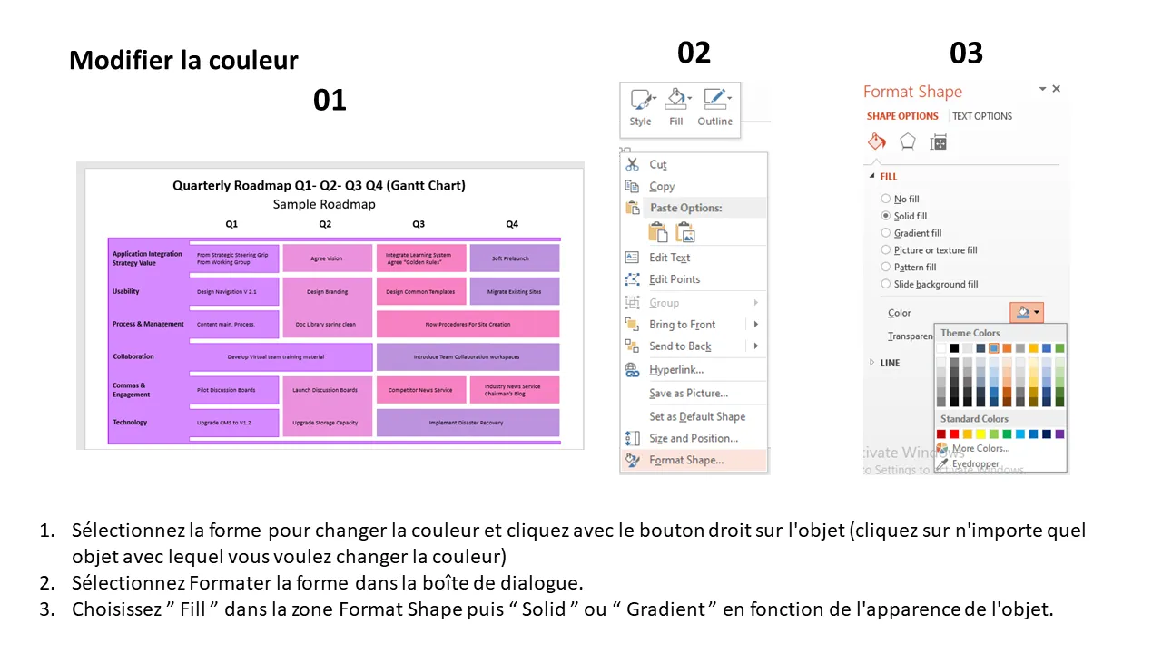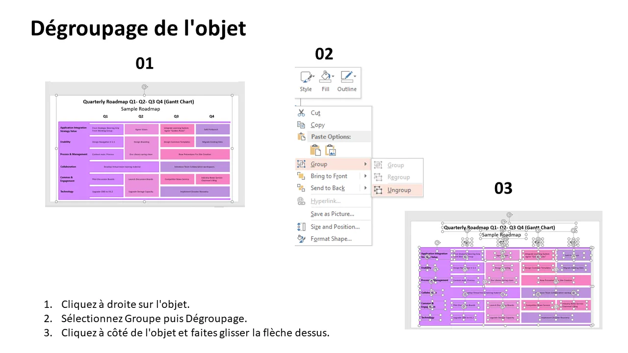 Explication du modèle PowerPoint de planification de feuille de route trimestrielle