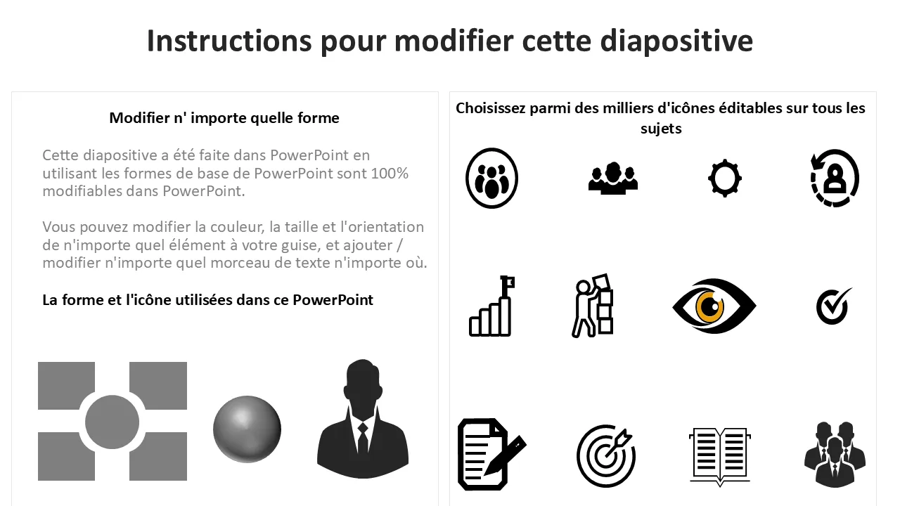 - Texte, formes, couleurs et icônes entièrement modifiables pour une personnalisation complète de la marque