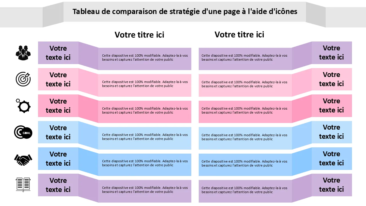 - Texte, formes, couleurs et icônes entièrement modifiables pour une personnalisation complète de la marque