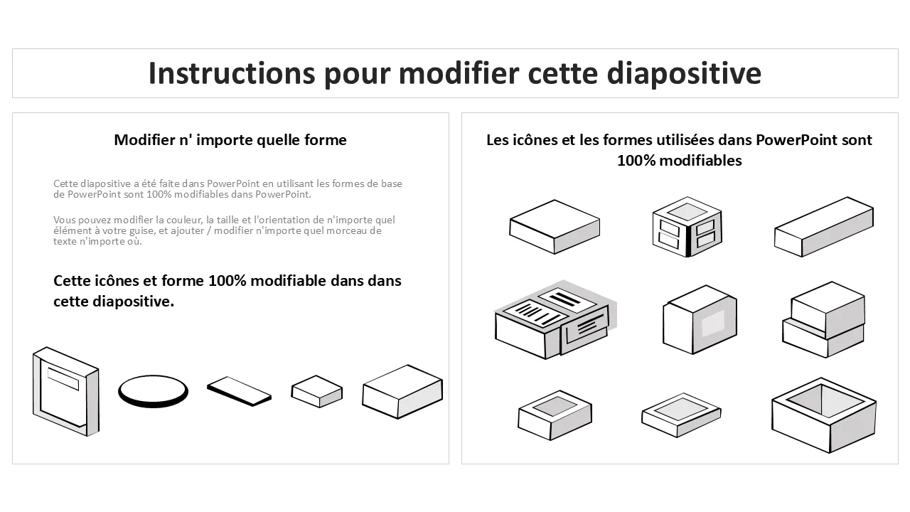 - Texte, formes, couleurs et icônes entièrement modifiables pour une personnalisation complète de la marque
