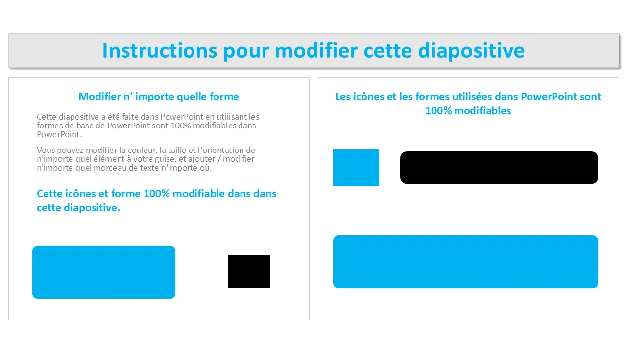 - Texte, formes, couleurs et icônes entièrement modifiables pour une personnalisation complète de la marque