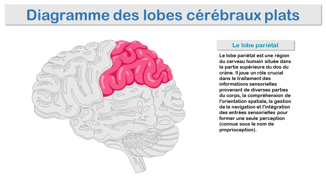 - Diagramme cérébral en coupe transversale préconçu avec des lobes étiquetés pour un enseignement rapide