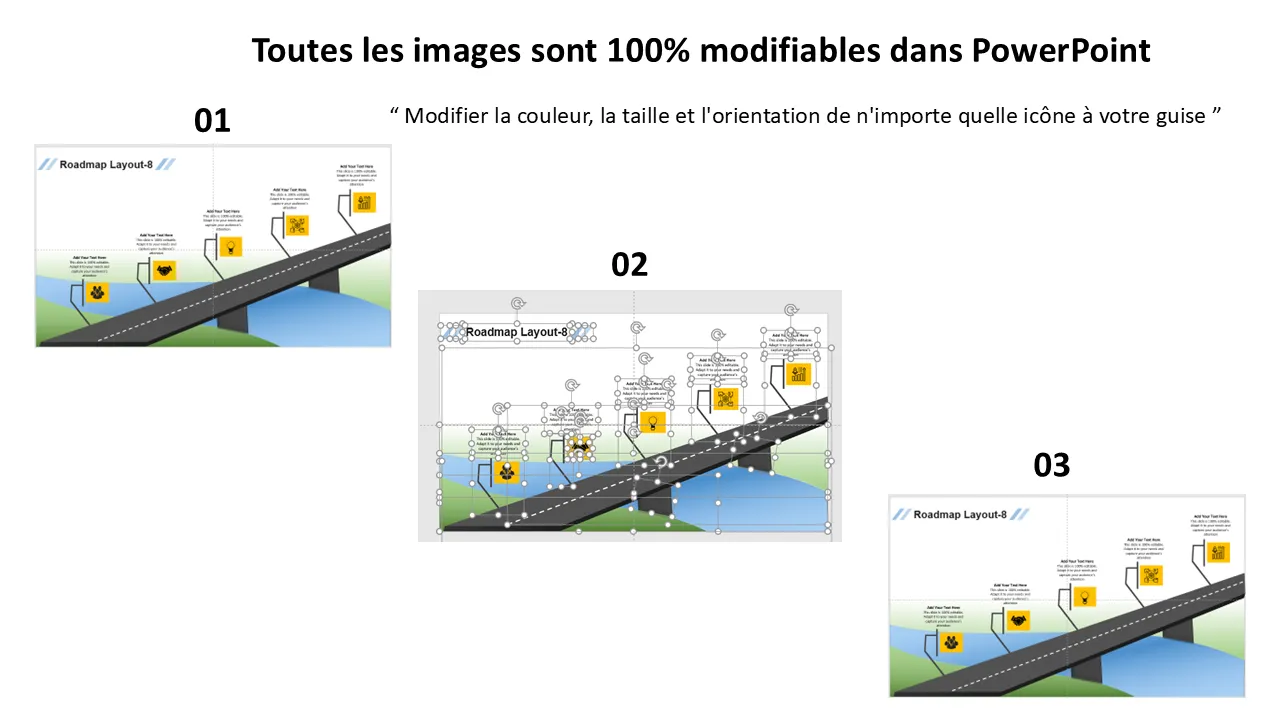 - Texte, formes, couleurs et icônes entièrement modifiables pour une personnalisation complète de la marque