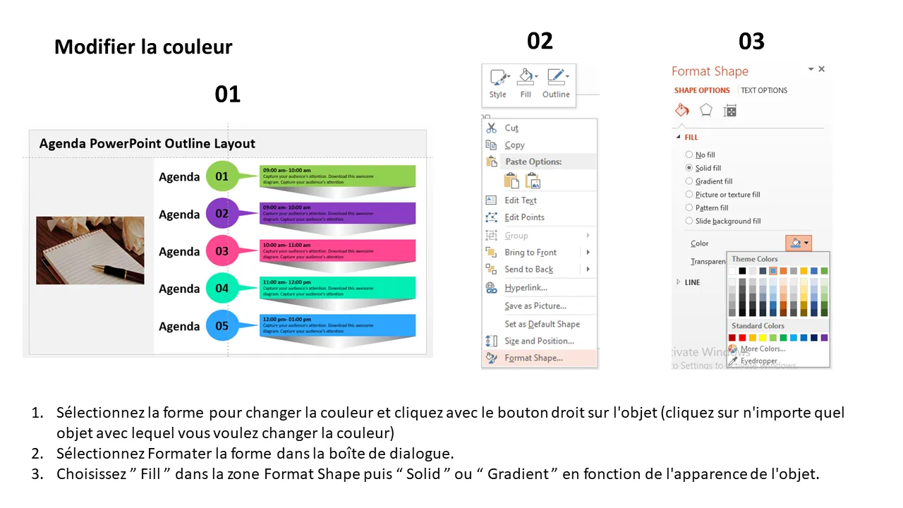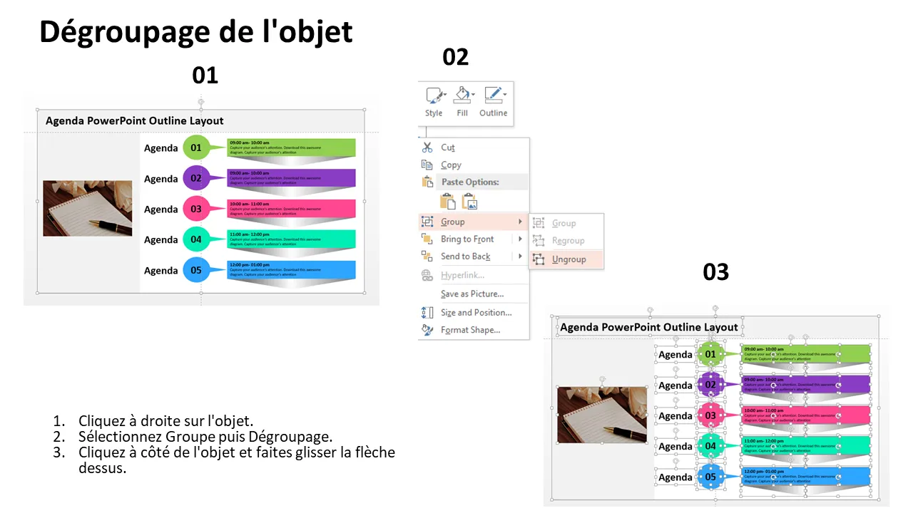 Explication du modèle PowerPoint d'agenda