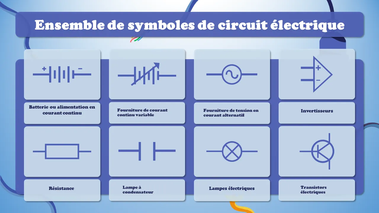 Ensemble d'éléments de symboles de circuits électriques pour explication Powerpoint