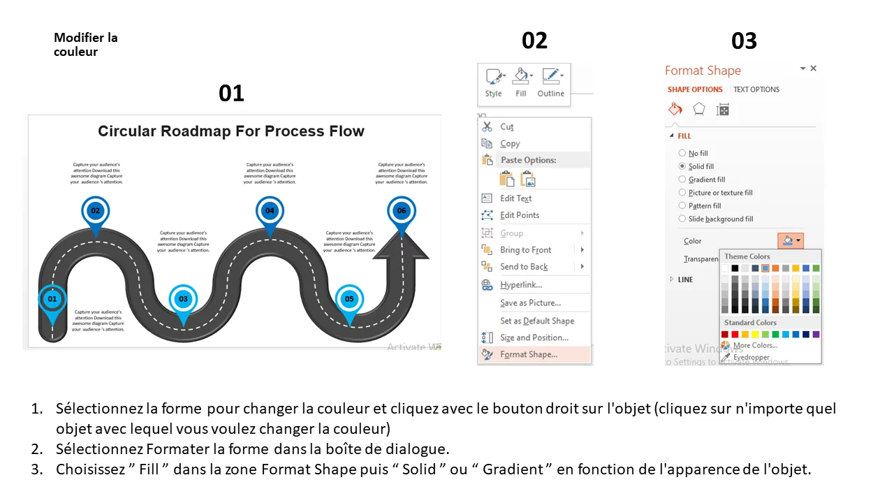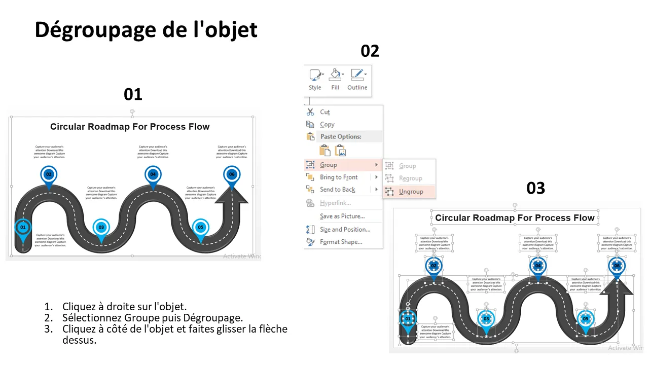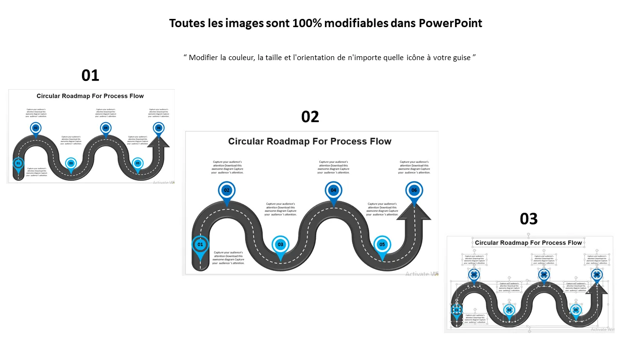 Explication du modèle PowerPoint de feuille de route de flux de processus circulaire
