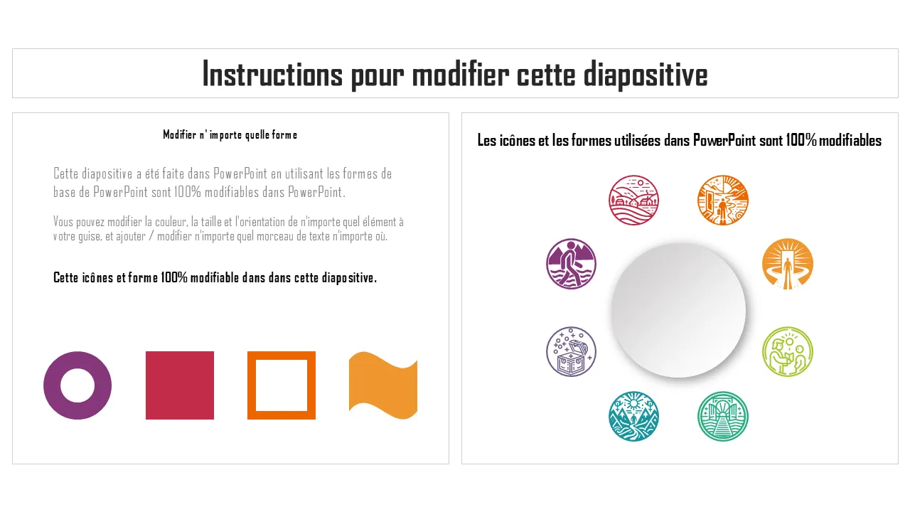 - Texte, formes, couleurs et icônes entièrement modifiables pour une personnalisation complète de la marque