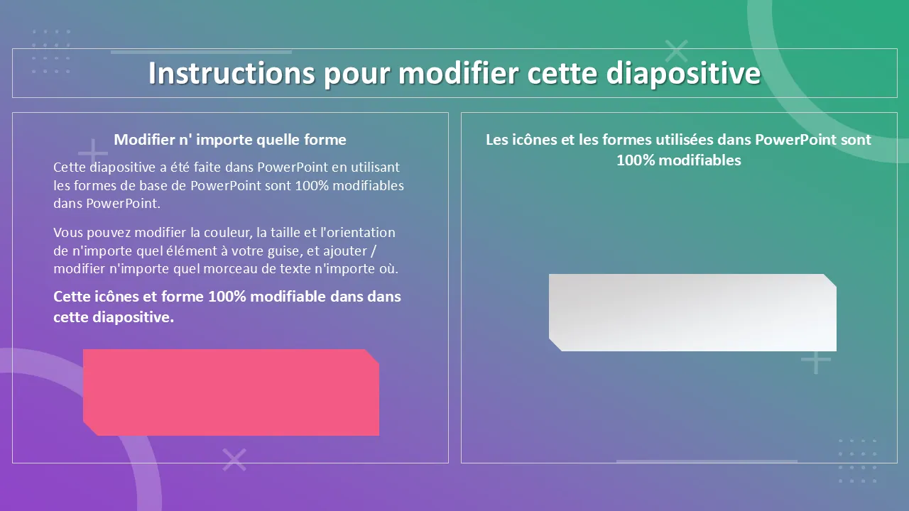 - Texte, formes, couleurs et icônes entièrement modifiables pour une personnalisation complète de la marque