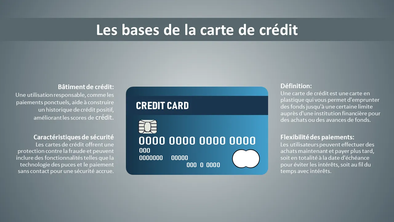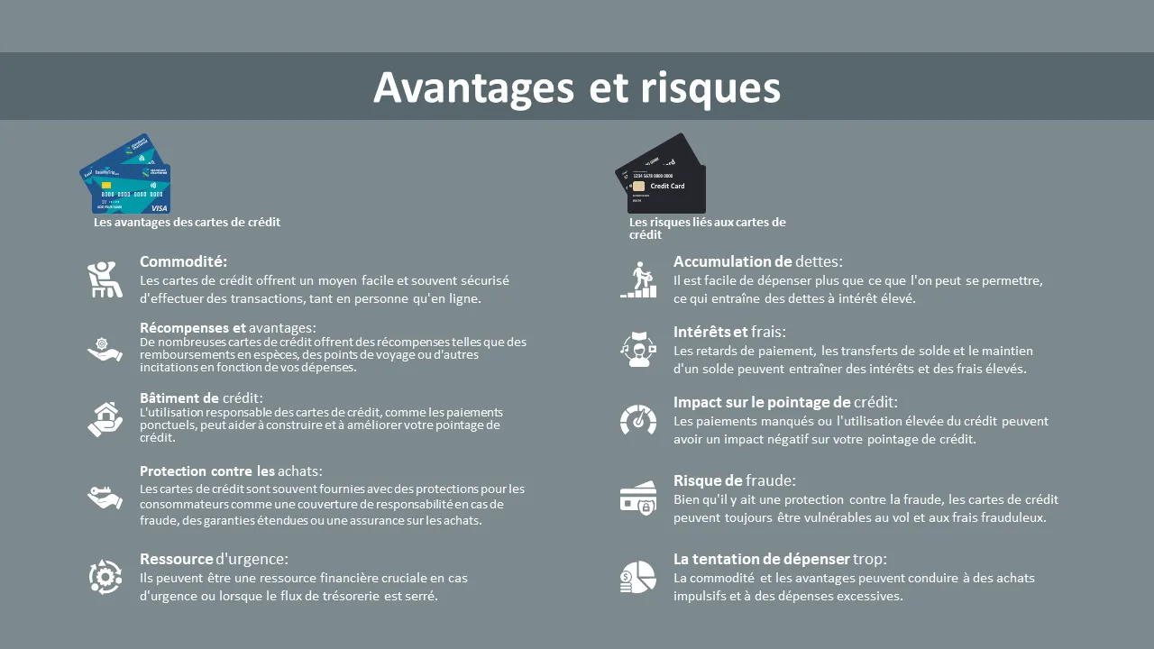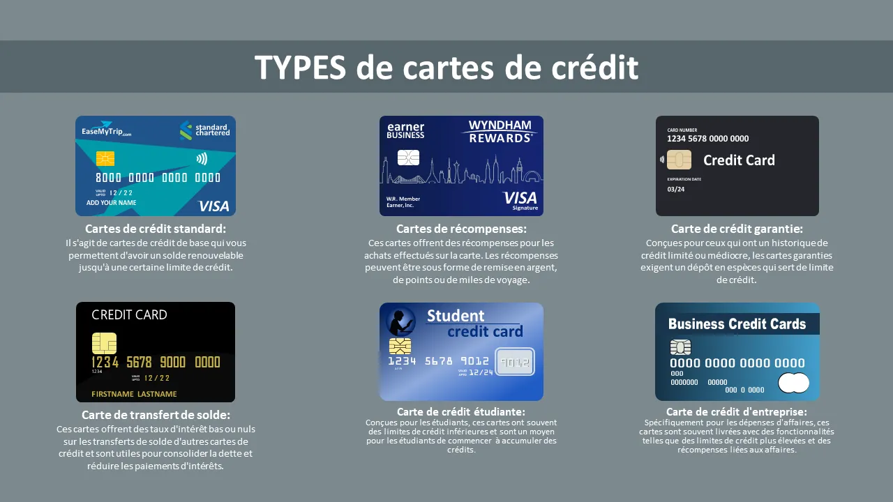 - Hiérarchie visuelle claire pour expliquer les types de cartes de crédit et leurs avantages