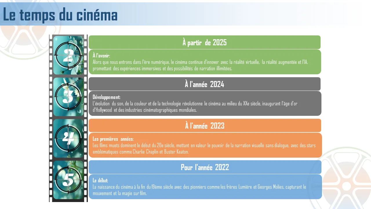 Caractéristiques de Modèle de chronologie de cinéma pour Powerpoint