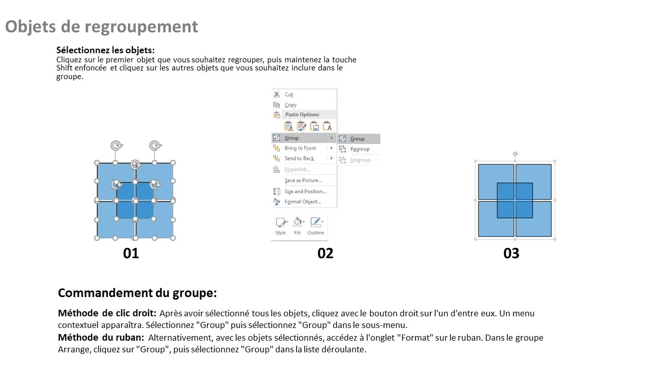 - Outils de regroupement préconfigurés pour un alignement et une édition faciles des objets