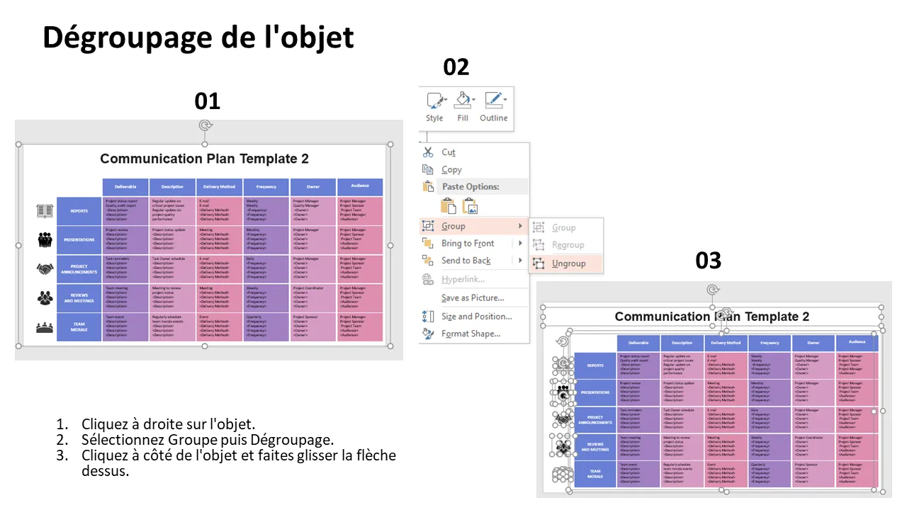 - Formats prêts à imprimer et adaptés au numérique pour les réunions internes et les examens des parties prenantes externes