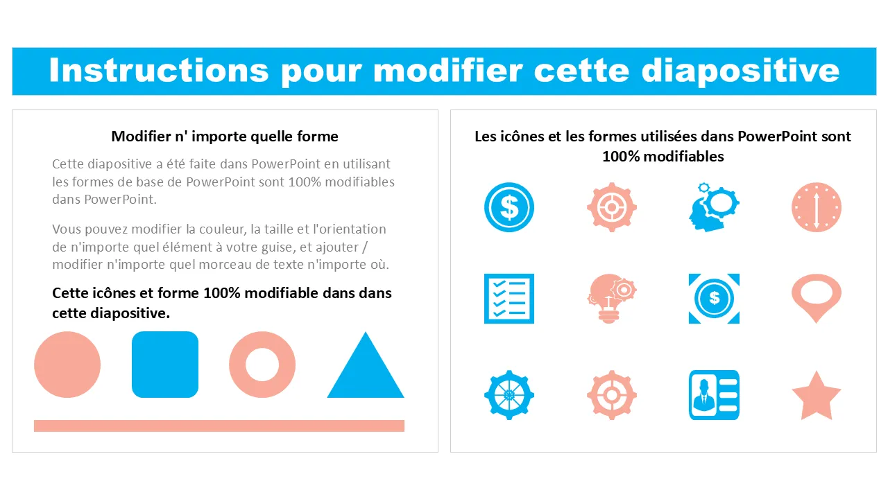 - Texte, formes, couleurs et icônes entièrement modifiables pour une personnalisation complète de la marque