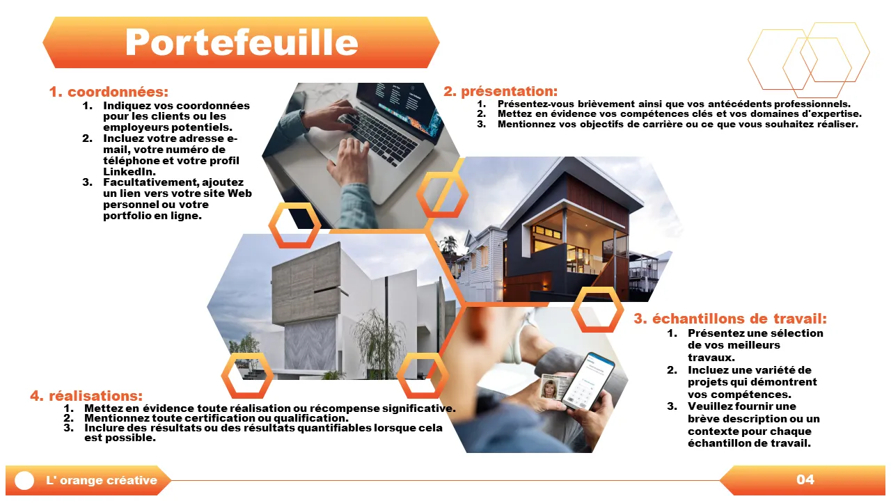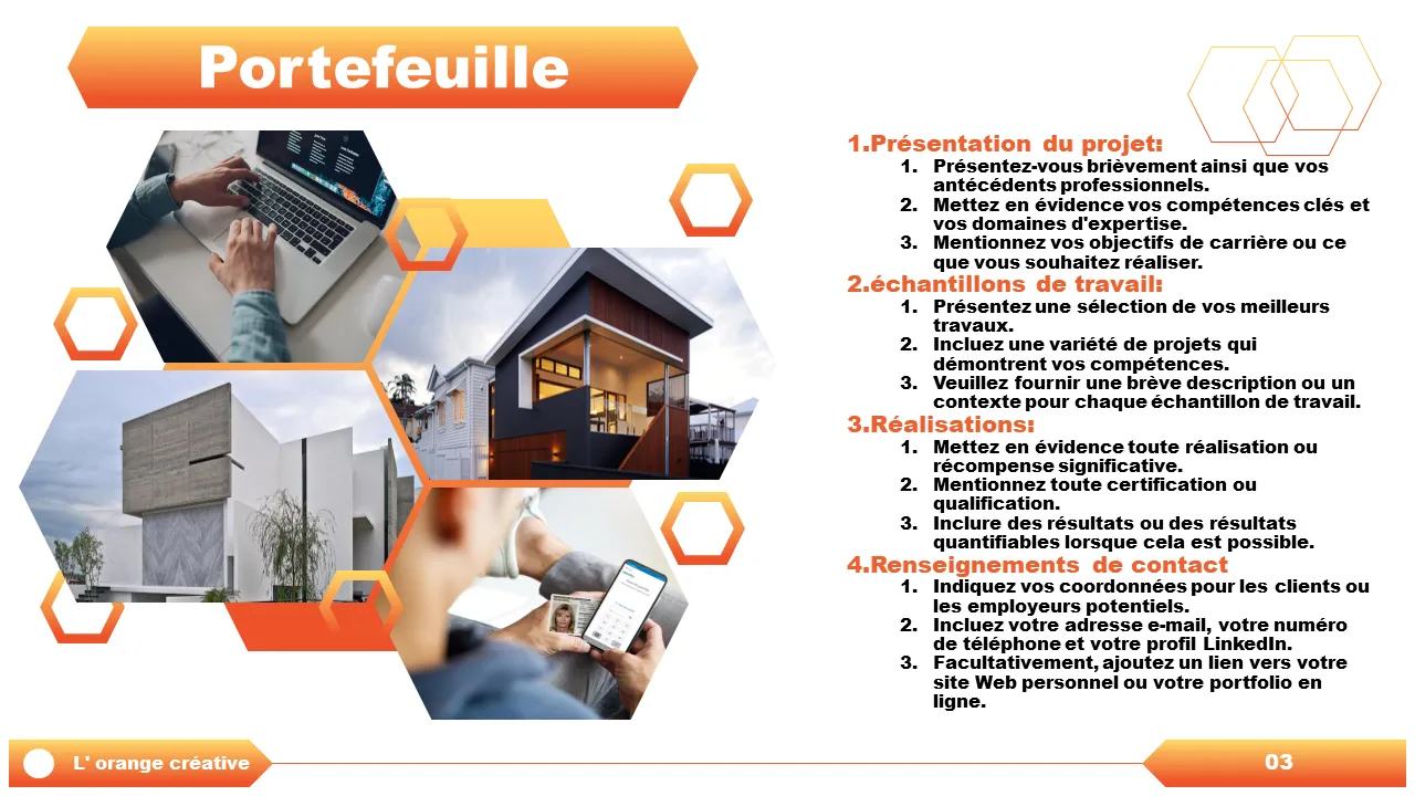 - Schéma de couleurs orange moderne avec un contraste élevé pour la hiérarchie visuelle