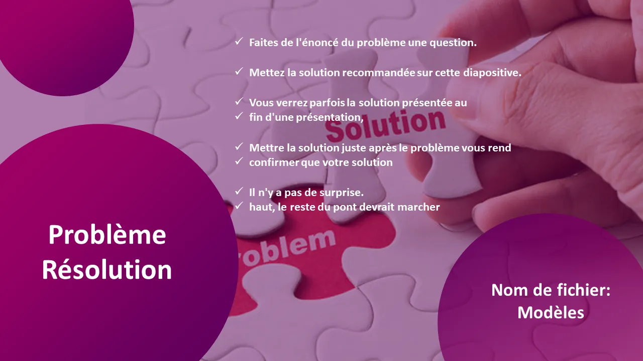 - Cadre de problèmes et de solutions pour définir clairement les défis commerciaux et les solutions proposées