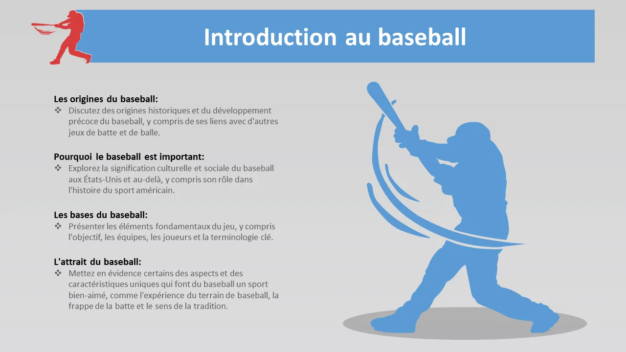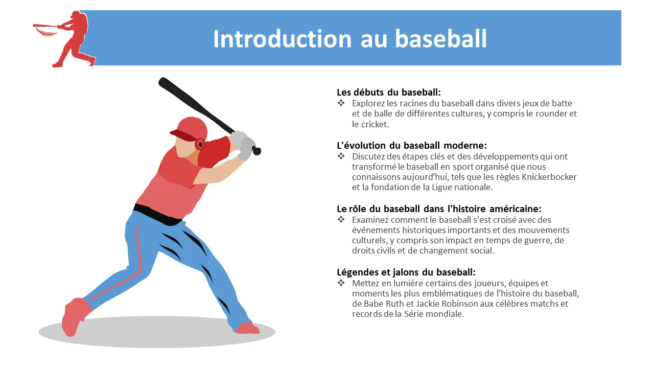 Explication du modèle PowerPoint sur l'histoire et la culture du baseball