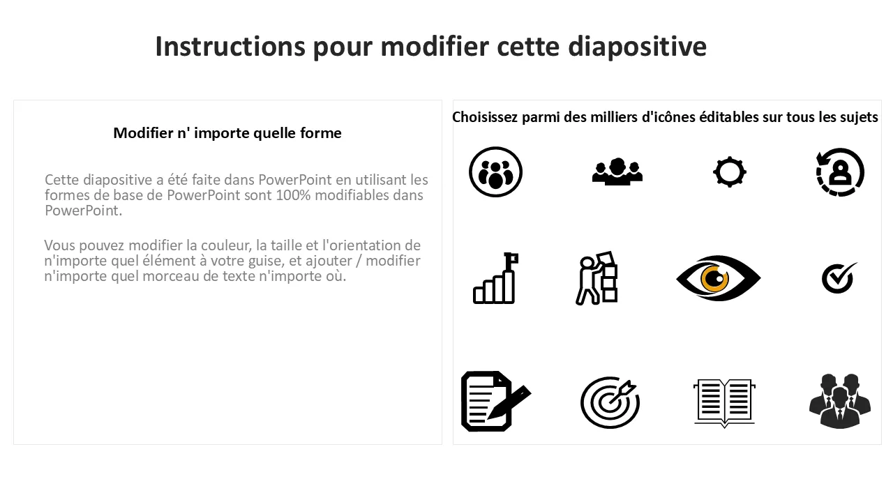 - Texte, formes, couleurs et icônes entièrement modifiables pour une personnalisation complète de la marque