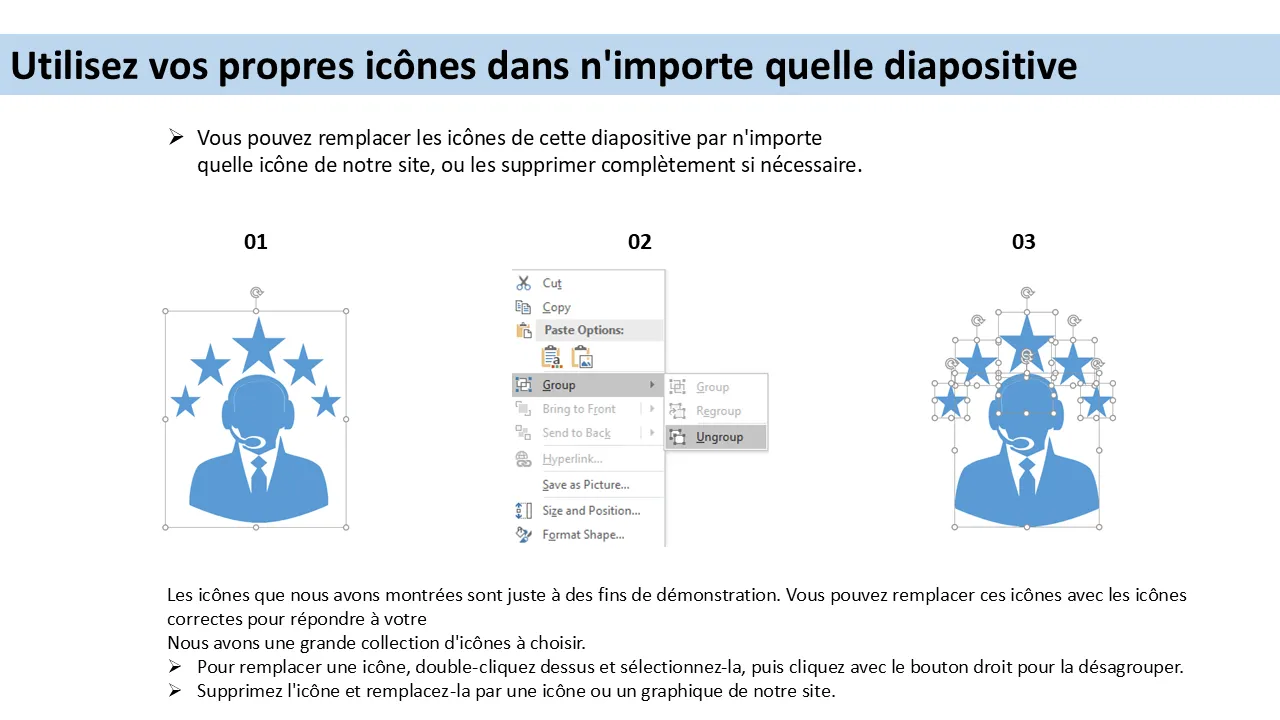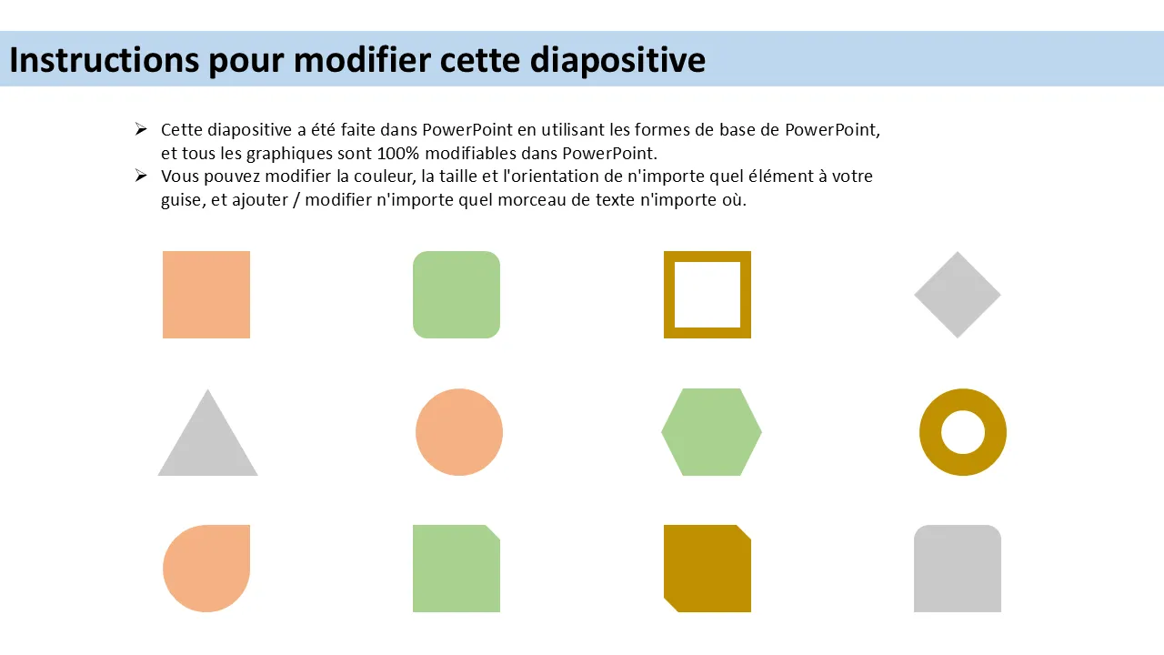 - Texte, formes, couleurs et icônes entièrement modifiables pour une personnalisation complète de la marque