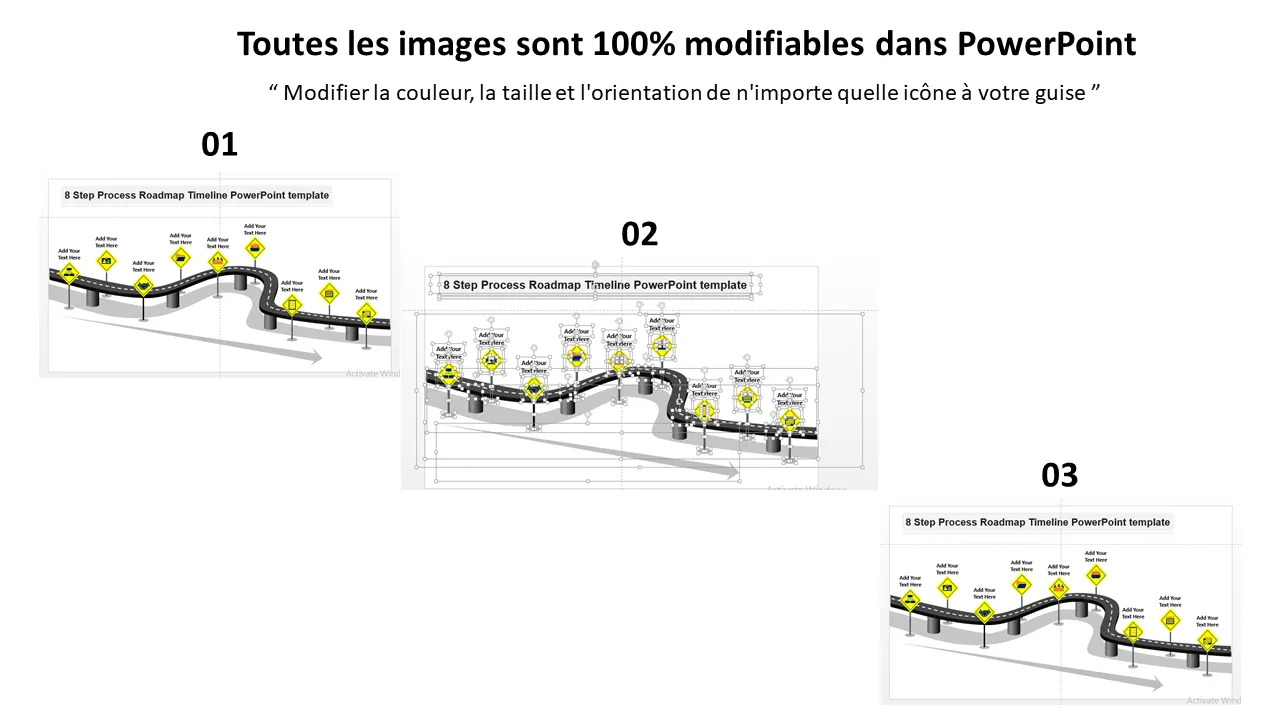 Caractéristiques de Modèle Powerpoint de chronologie de feuille de route de processus en 8 étapes