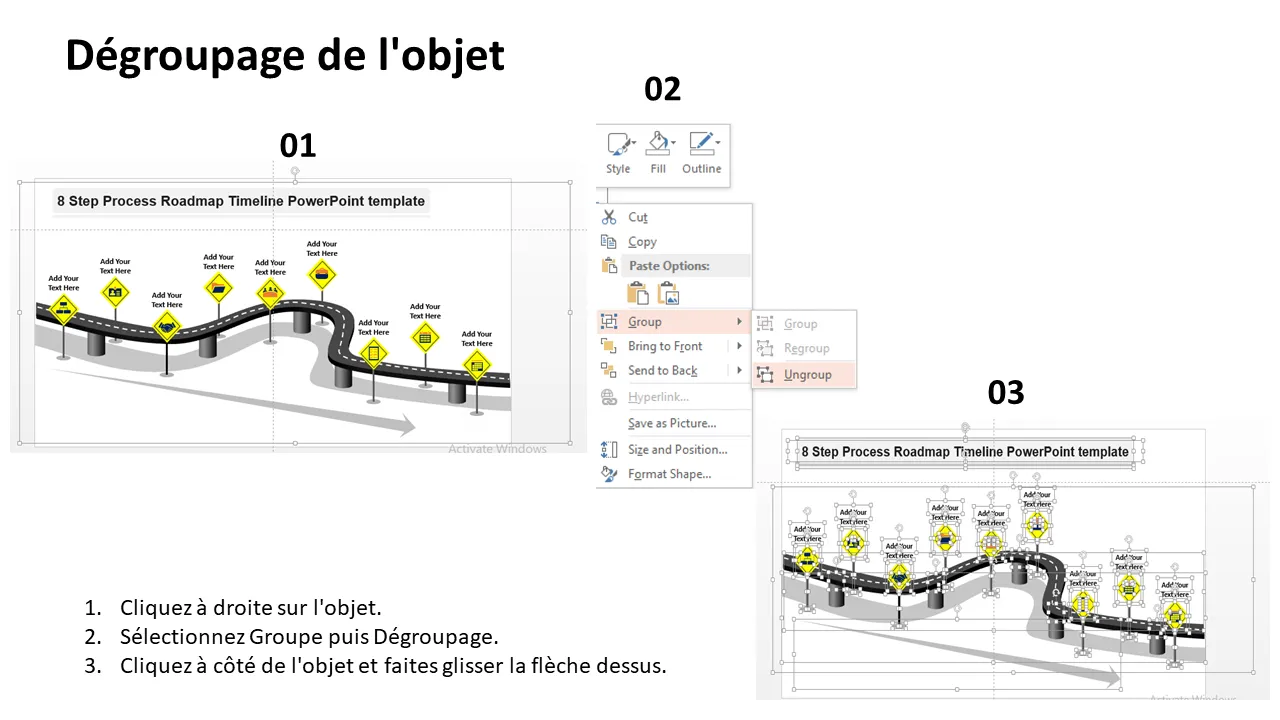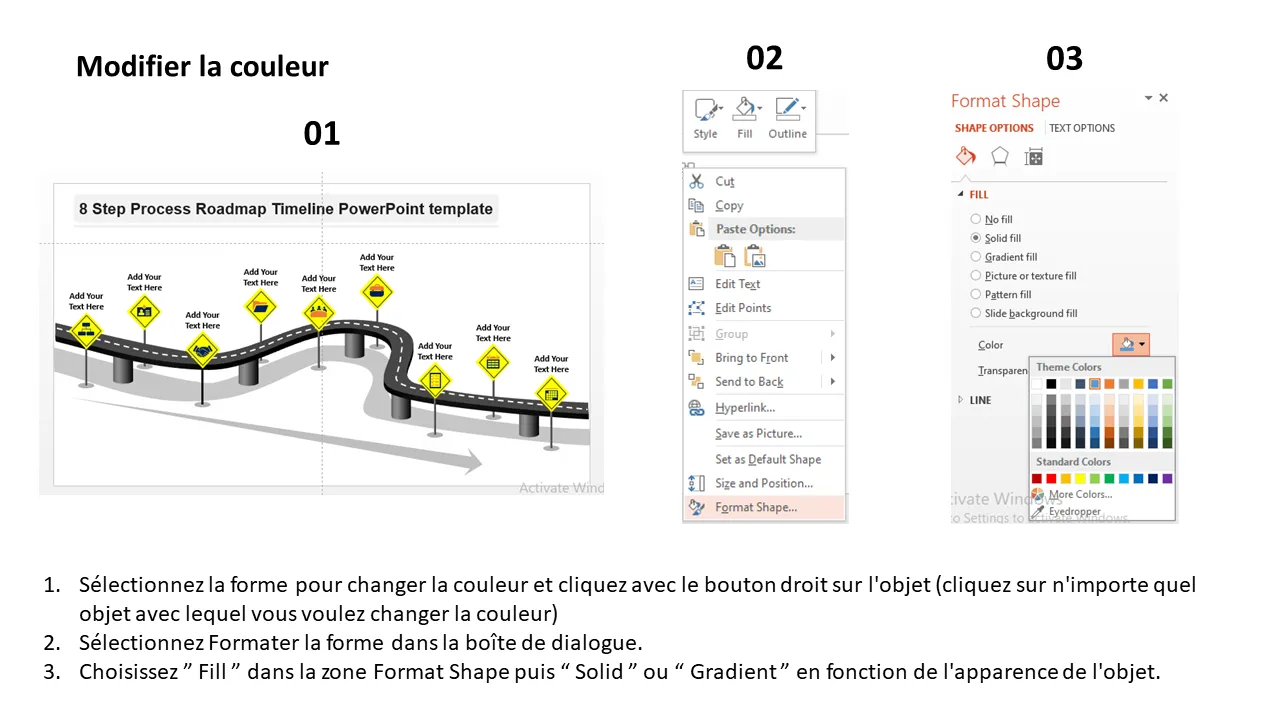 Explication du modèle PowerPoint de la chronologie de la feuille de route du processus en 8 étapes