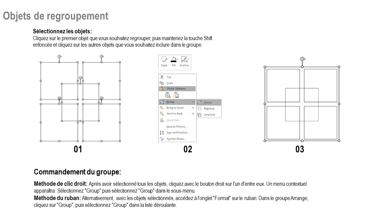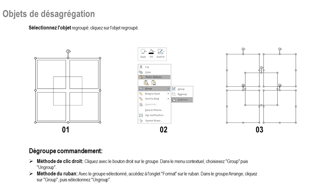 - Comprend des instructions de regroupement et de dissociation pour faciliter l'édition