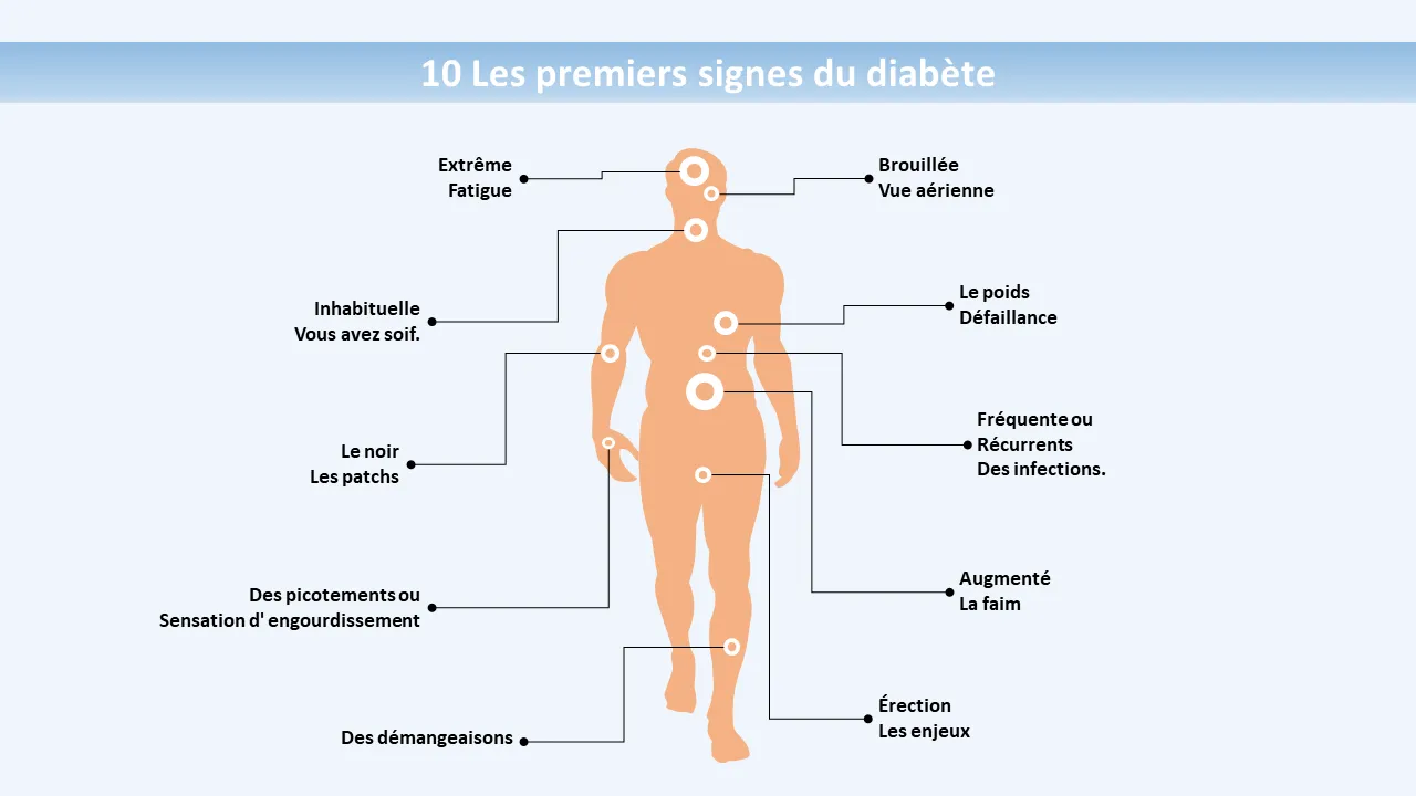 - Diapositives visuellement structurées couvrant les symptômes, les causes et la prévention du diabète