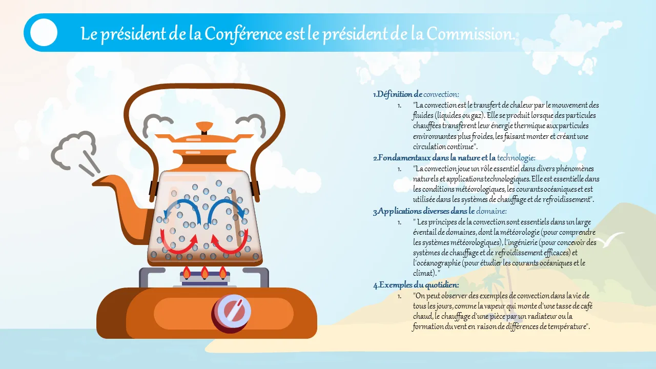 Ce modèle PowerPoint est conçu pour aider les utilisateurs à représenter visuellement les processus de convection avec clarté et précision. Idéal pour le public technique, il simplifie les concepts complexes de transfert de chaleur à l'aide de diagrammes intuitifs et d'un guidage visuel étape par étape. Le modèle prend en charge les présentations pédagogiques et professionnelles, ce qui en fait un outil précieux pour les ingénieurs, les physiciens et les enseignants. Il met l'accent sur l'organisation visuelle pour améliorer la compréhension de la dynamique des fluides et du mouvement thermique.