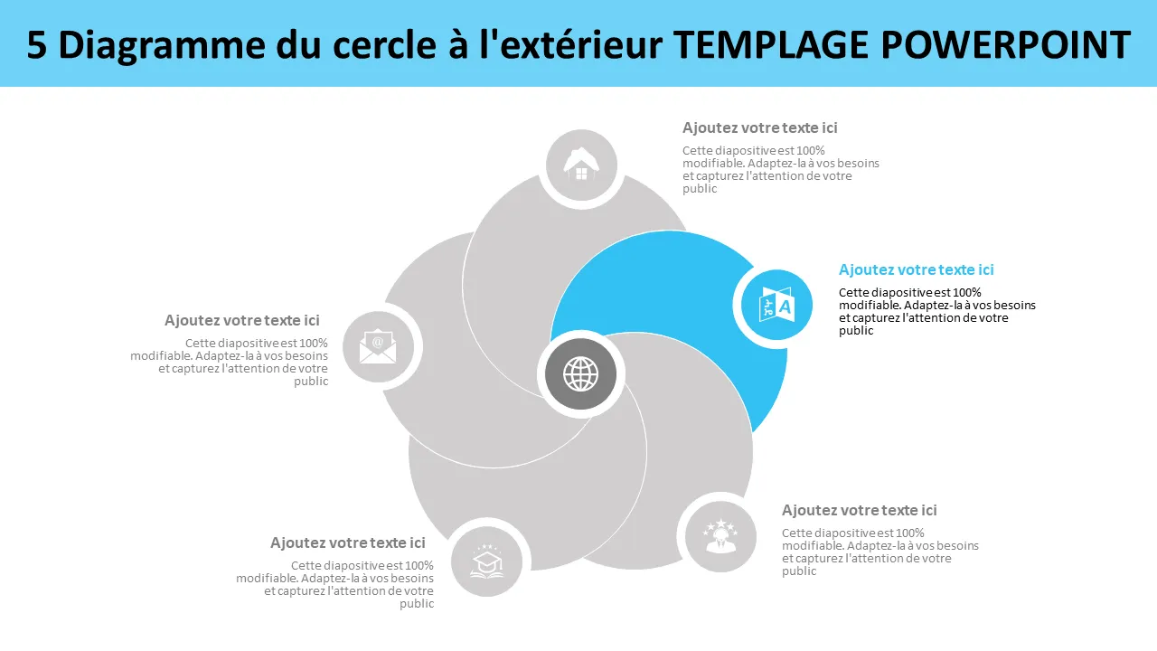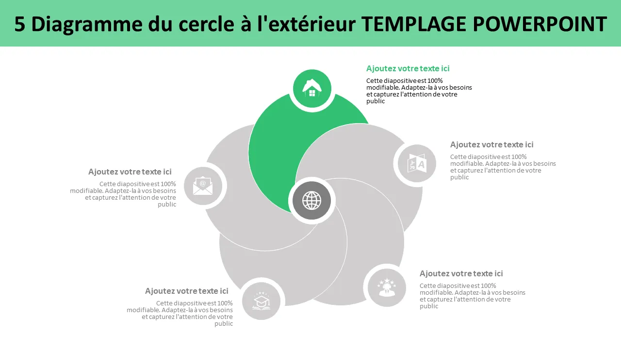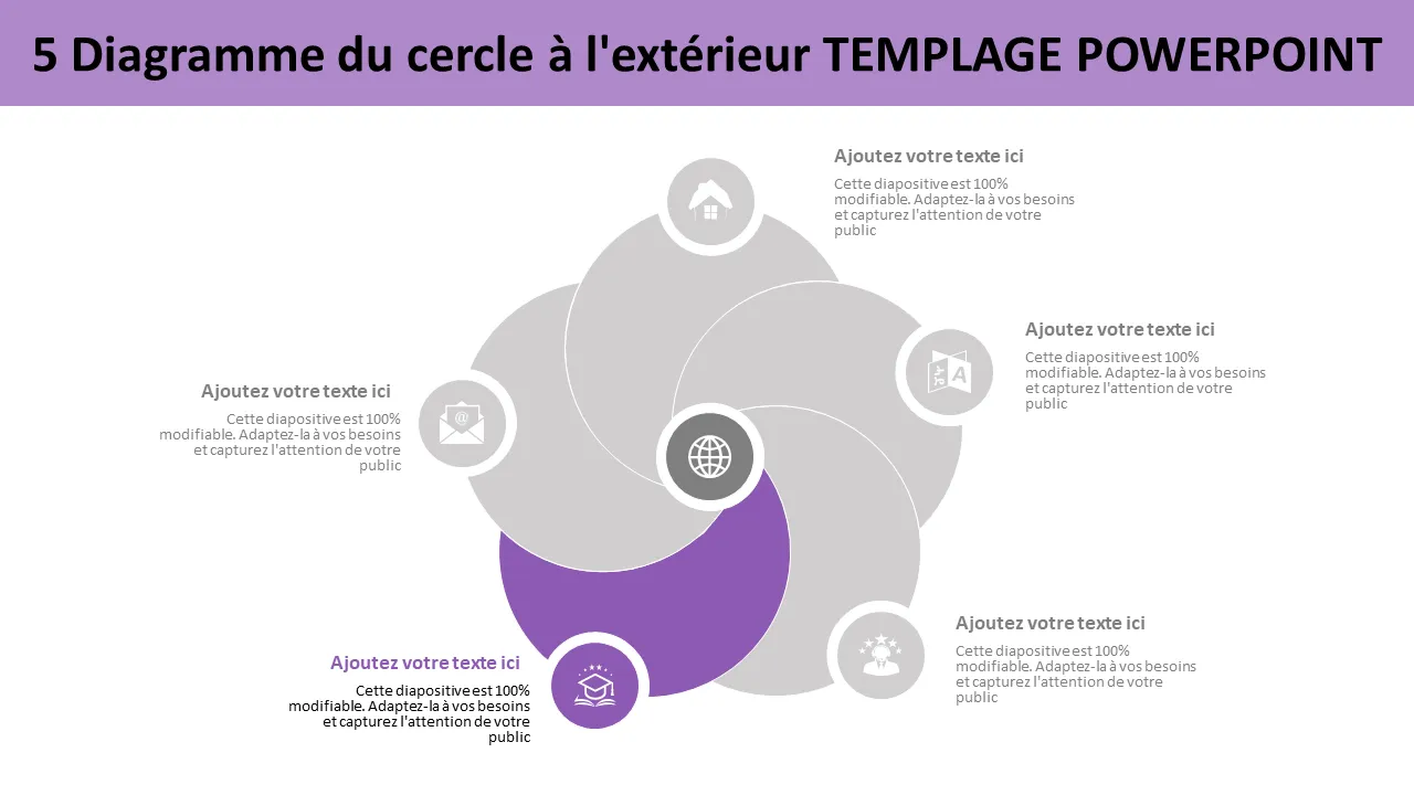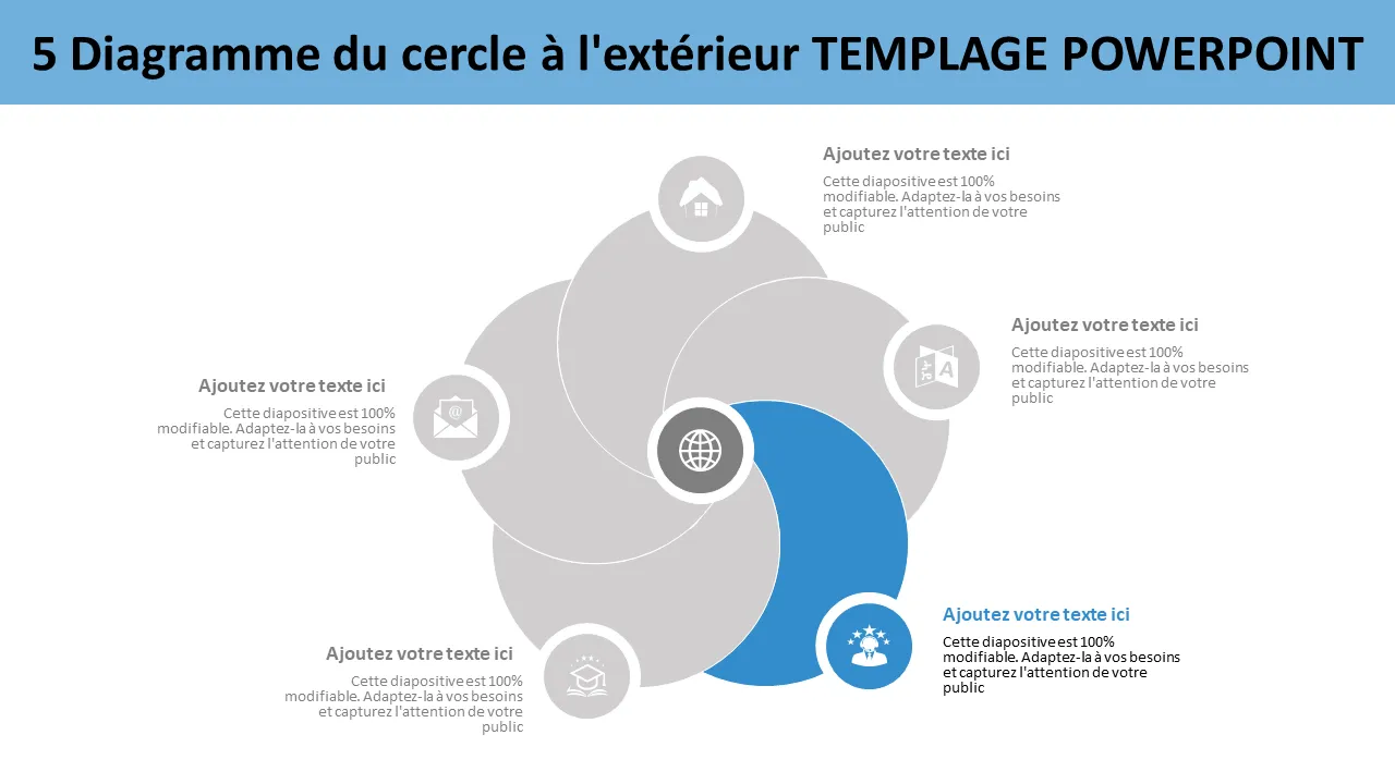 Modèle Powerpoint de diagramme de Venn à 5 cercles