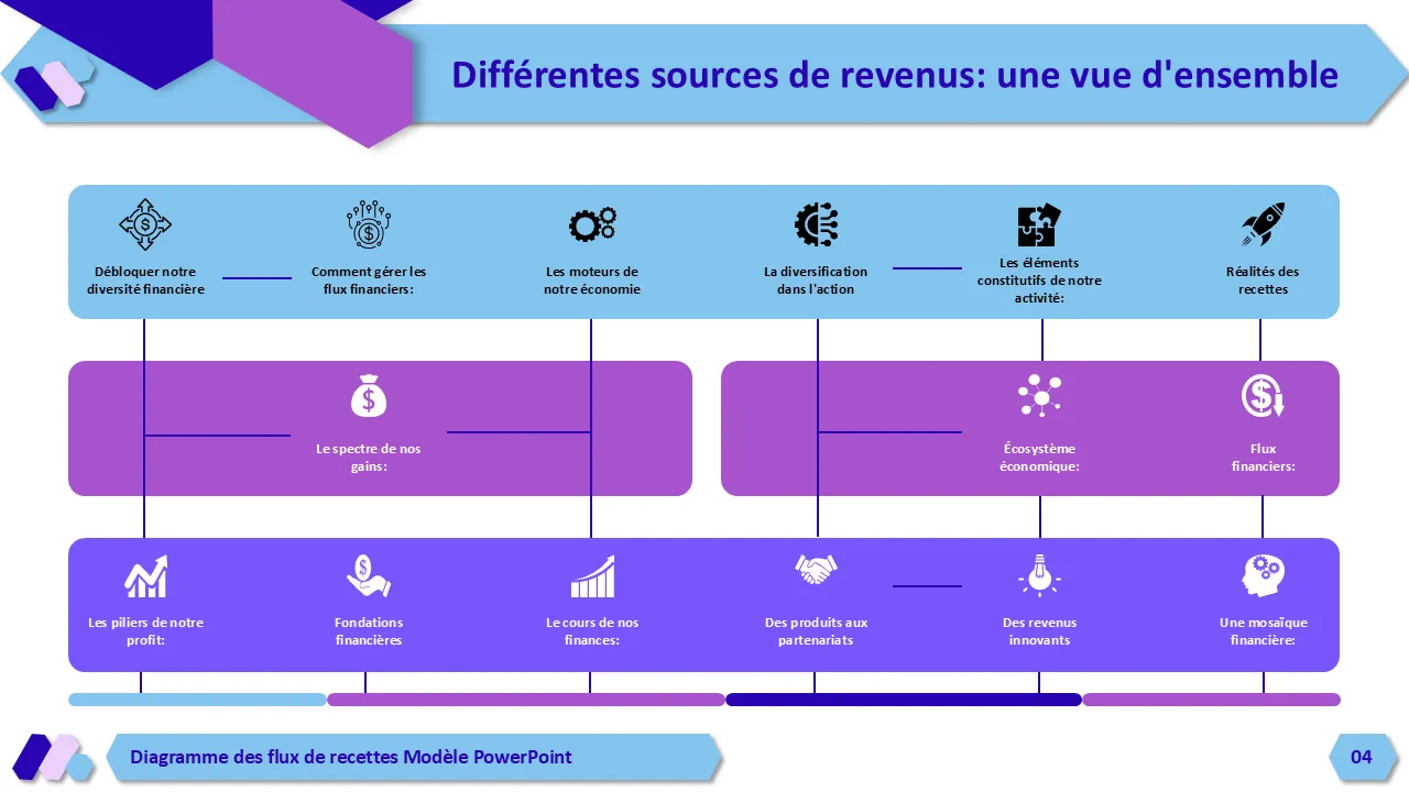 Caractéristiques de Modèle PowerPoint de diagramme des flux de revenus pour les présentations professionnelles