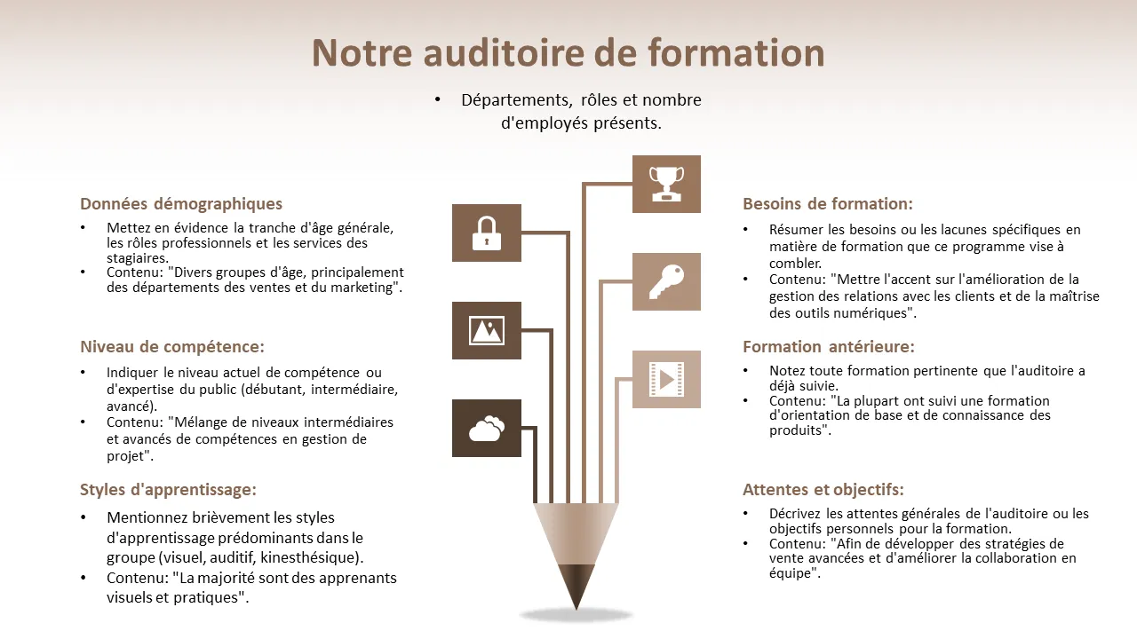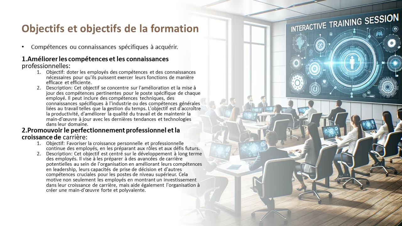 Caractéristiques de Modèle PowerPoint de plan de formation des employés