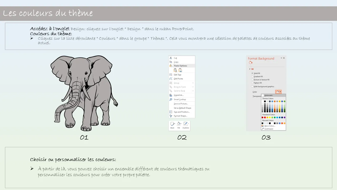- Langage de conception cohérent sur toutes les diapositives pour une narration cohérente