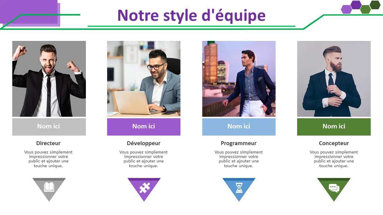 - Langage de conception cohérent sur toutes les diapositives pour une narration cohérente