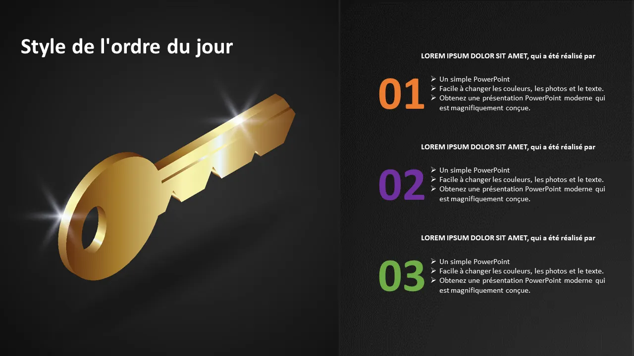 Explication du modèle PowerPoint de clé d'or de main d'homme d'affaires