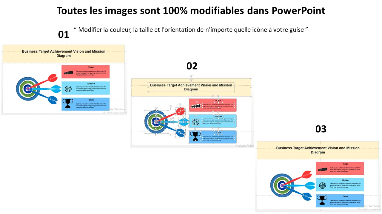 Caractéristiques de Modèles Powerpoint de diagramme de vision et de mission pour la réalisation des objectifs commerciaux