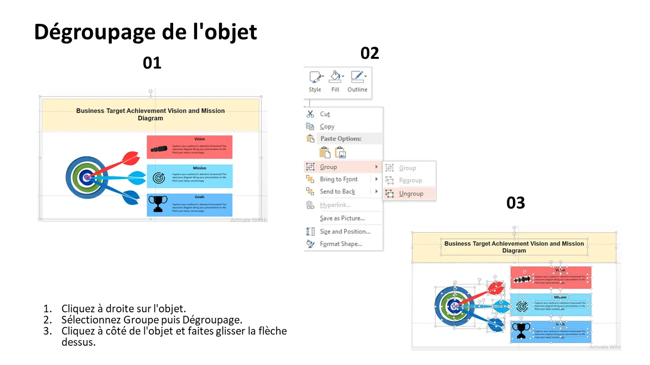 FAQ - Modèles Powerpoint de diagramme de vision et de mission pour la réalisation des objectifs commerciaux
