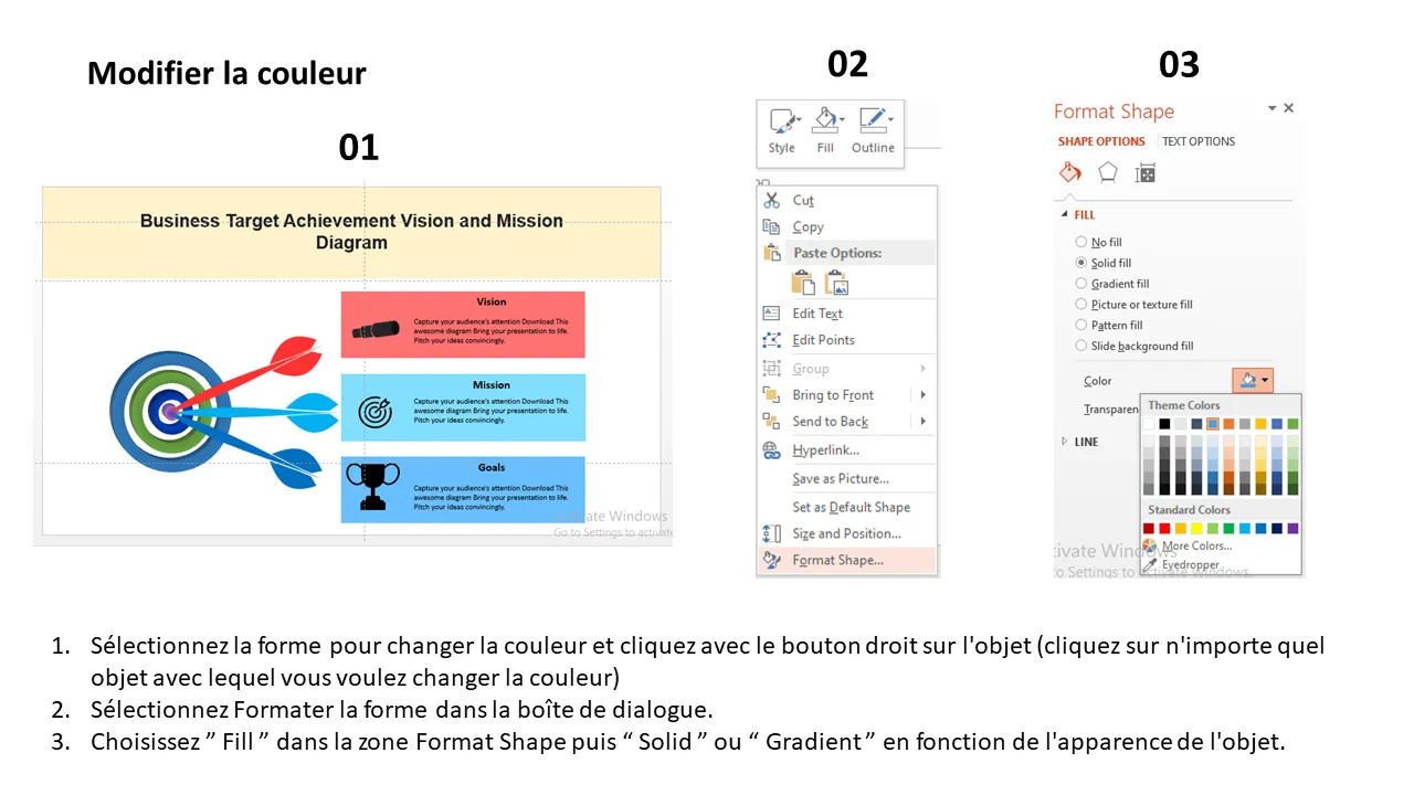 Explication du modèle PowerPoint de diagramme de mission de vision d'entreprise