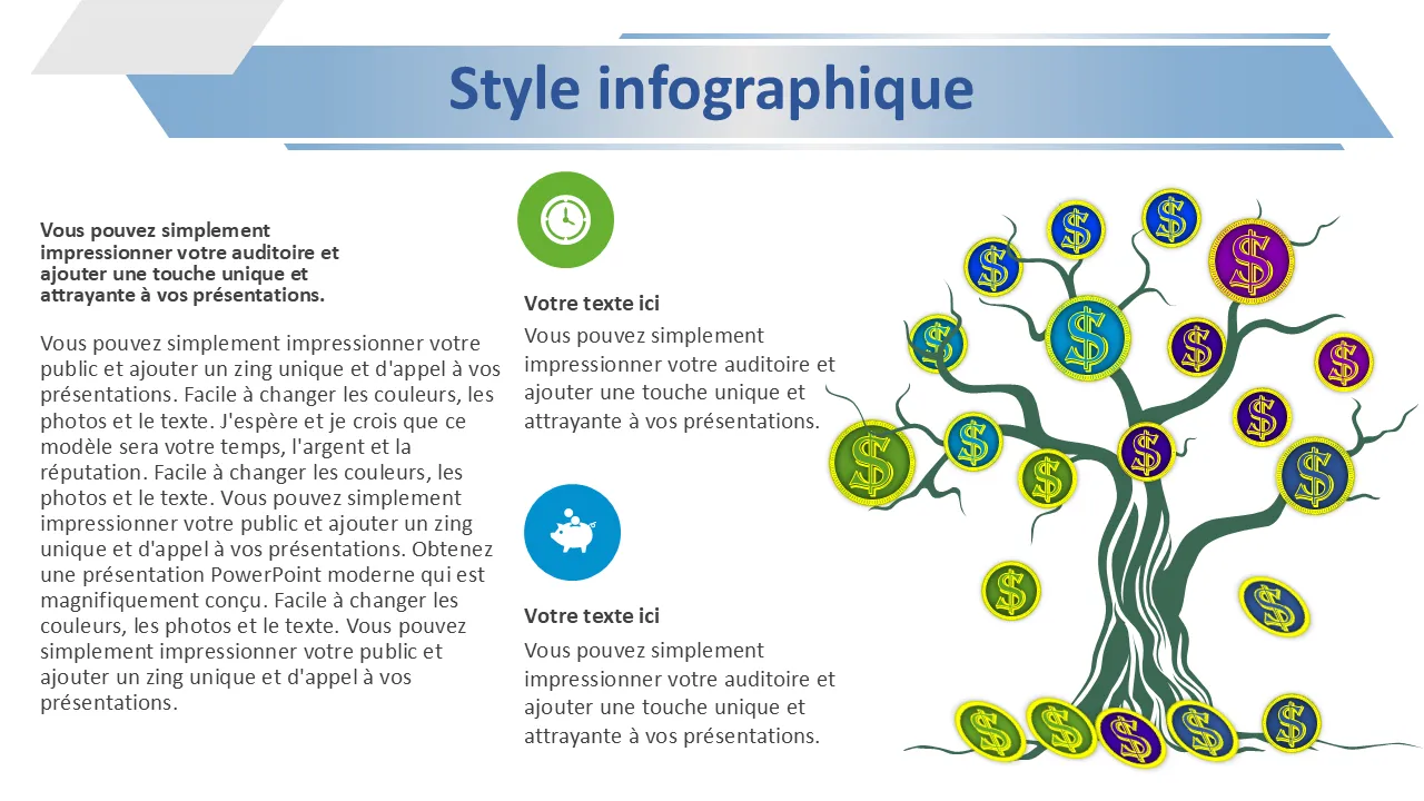 - Langage de conception cohérent sur toutes les diapositives pour une narration cohérente