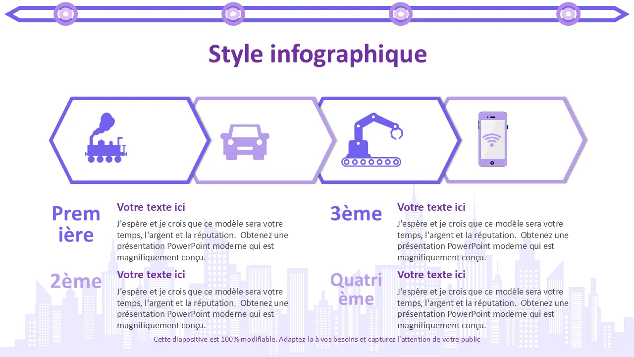 - Texte, formes, couleurs et icônes entièrement modifiables pour une personnalisation complète de la marque