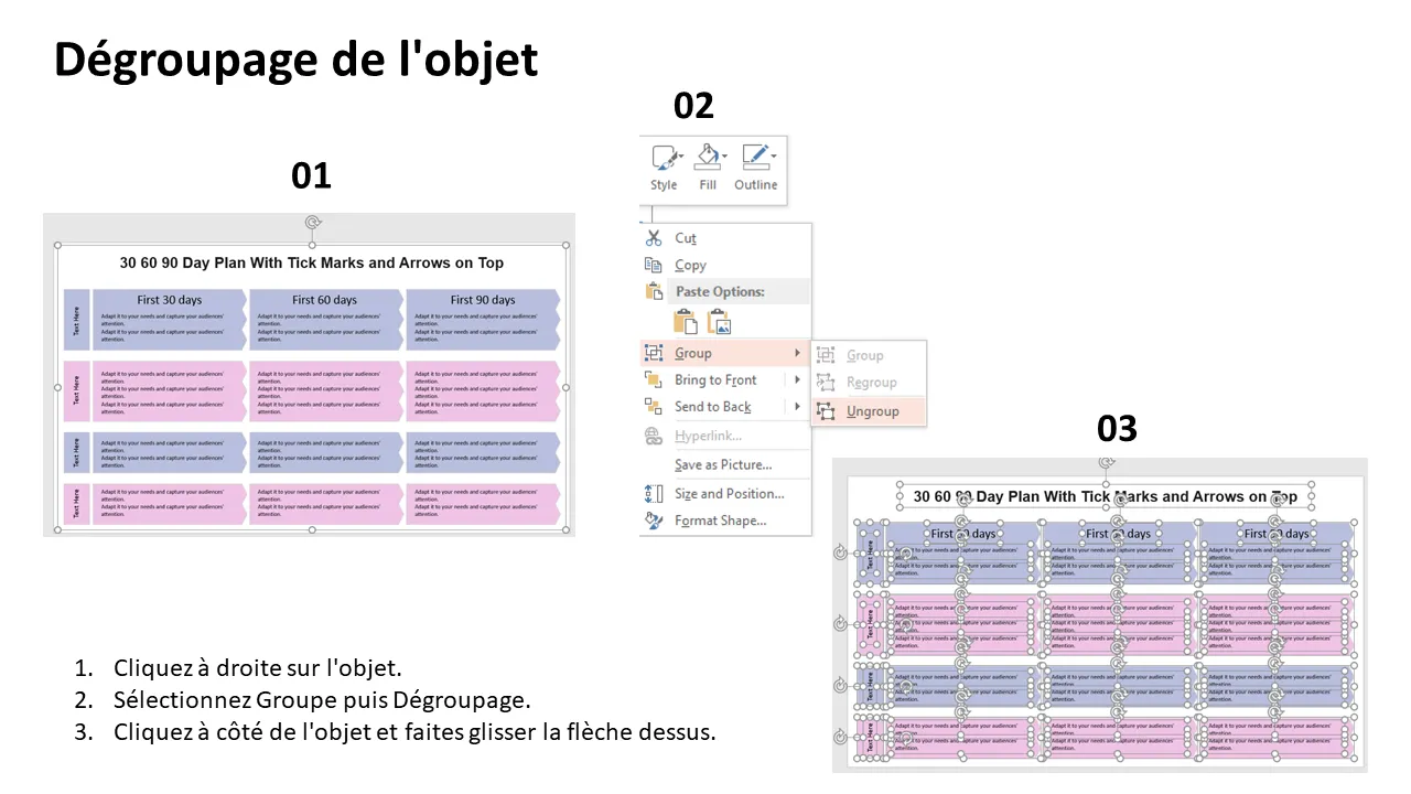 Explication du modèle PowerPoint de plan stratégique sur 30 60 90 jours
