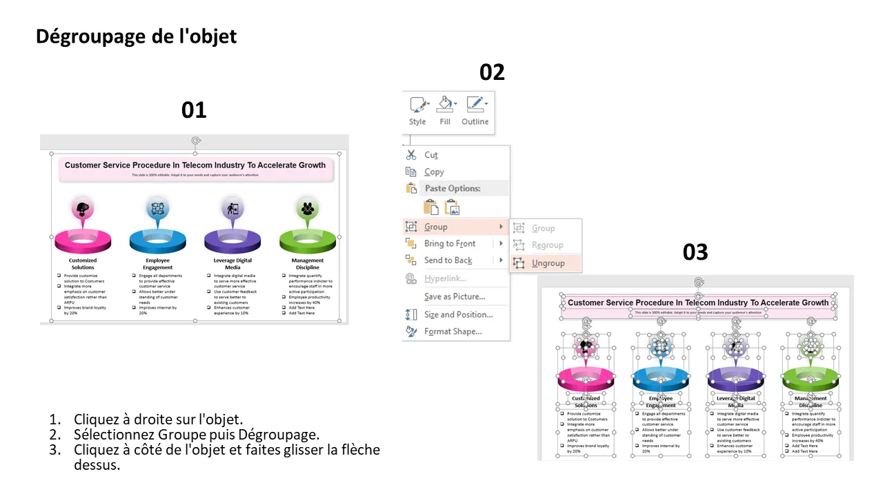 Modèle PowerPoint de processus de service client pour la croissance des télécommunications