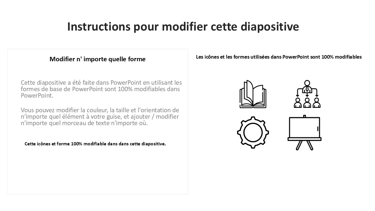 - Texte, formes, couleurs et icônes entièrement modifiables pour une personnalisation complète de la marque