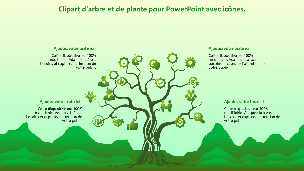 TreePlant Clipart pour PowerPoint avec des icônes Modèle PowerPoint pour les présentations professionnelles